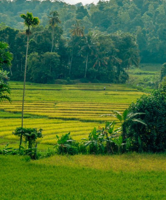 Udugoda is a scenic agrarian village under Panvila Divisional Secretariat in Kandy District, set among lush paddy fields and natural waterways (including tributaries of Ravan Oya). About 80% of households are engaged in agriculture, largely rice cultivation, but also other crops. In addition, there are families involved in artisanal and small-scale traditional trades: blacksmithing, metal-work (silver, gold), making cooking pans, possibly batik or kitul-based products. The village also has strong educational and religious institutions: Udugoda Junior High School serves many local children, and the Rajamaha Viharaya (major Buddhist temple) along with legends connected to “Henakandabiso Bandara Devi” are central to local culture and identity. The nursery school is housed in a hall connected to local legend.